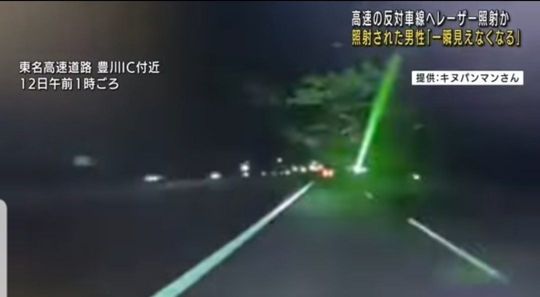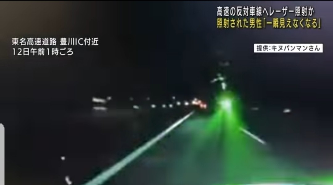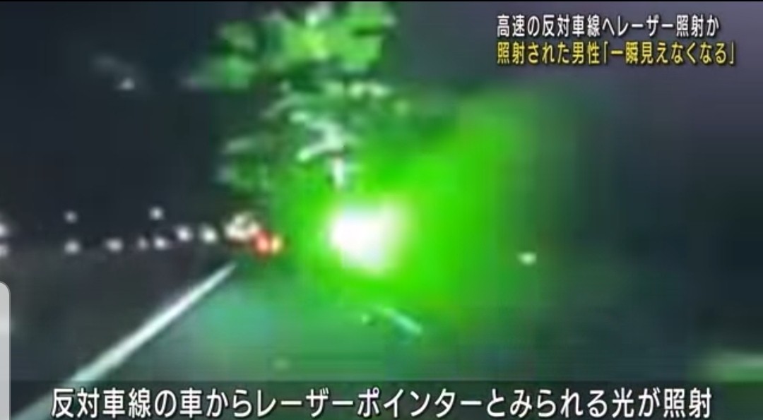 突然、反対車線の車からレーザーポインターとみられる強い光が照射され、運転席付近に当たります。