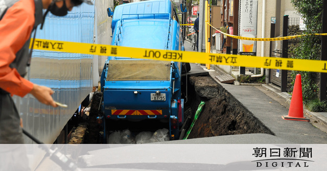 繁華街で道路陥没「ごみ収集車はまった」 吉祥寺駅近く、けが人なし:朝日新聞