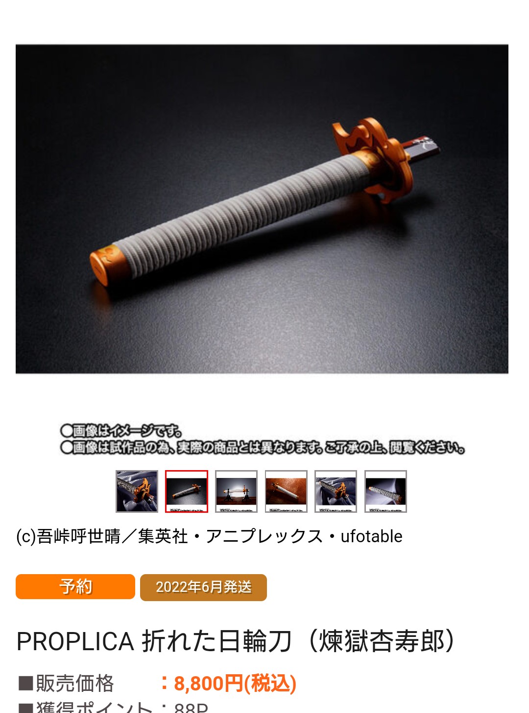 【画像】煉獄杏寿郎の折れた日輪刀が8,800円(税込)wwwwwwww