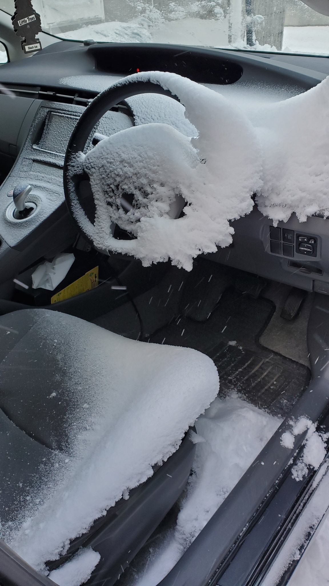 車に雪が入り込んでる!とりあえず写真撮ってネットにあげなきゃ!