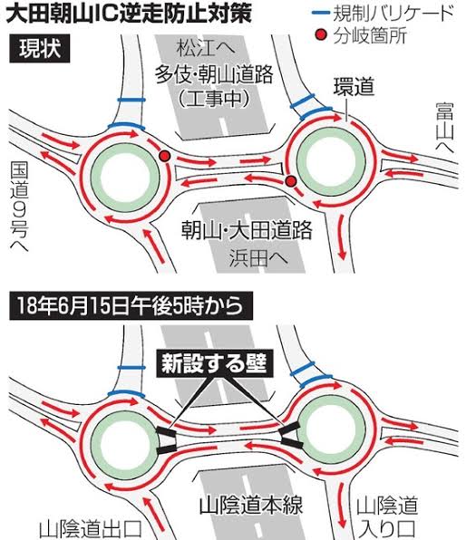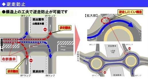 環状交差点から逆走 島根の「朝山・大田道路」 防止策効果無し