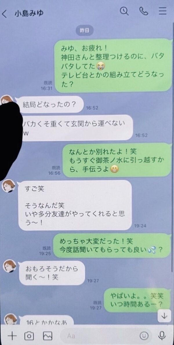 小島みゆのインスタにLINEの画像本物?と質問コメント