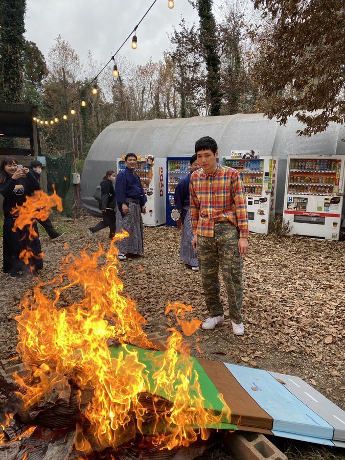 燃やしたのはよくもう中がコントで使う書き割りの段ボールだから多分全部もう中の作