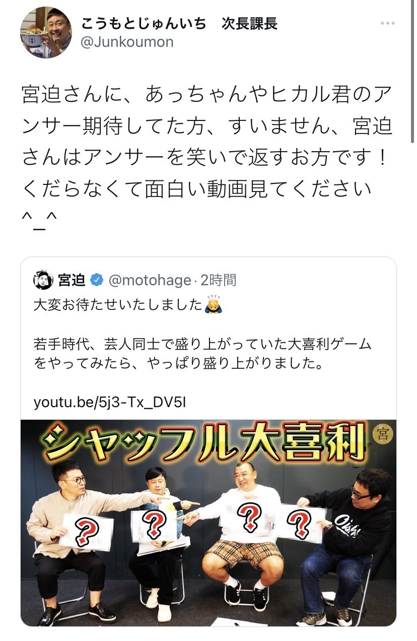 宮坂さんは笑いでアンサーをする芸人なんやが?