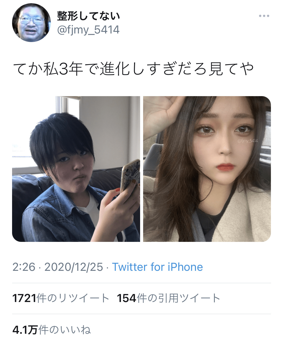 進化って化粧塗りたくって写真加工した事言ってんのか?