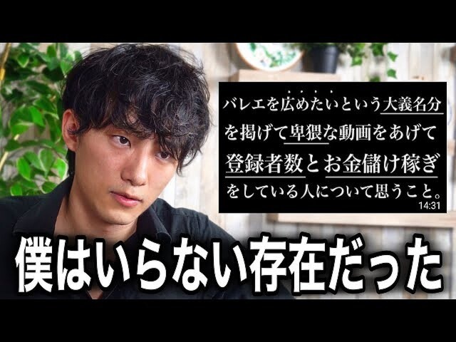 最新のヤマカイさんの動画いわく、僕の2本目の動画で、『ヒューマは他のバレエダンサーさんを盾にして発言した。他のダンサーさんもヒューマと同じことを思っていると言っていた』といった内容の動画を投稿して涙を流していました。