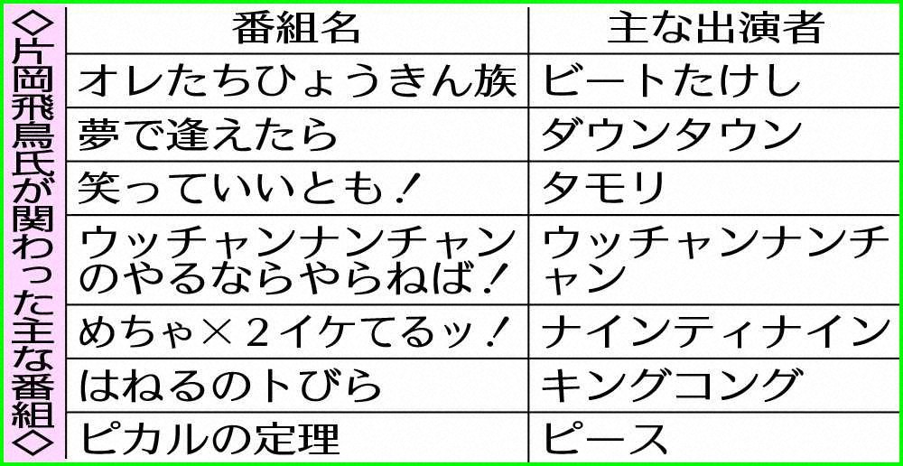 90年代以降の日本のバラエティーをけん引してきた名プロデューサーの片岡飛鳥氏(57)が同局を退社することが17日、分かった。