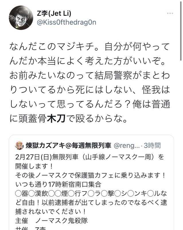 z李「木刀持って家に突撃するから待ってろ!」
