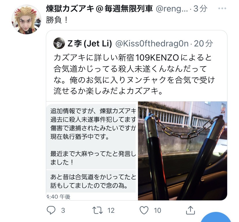 Z「ヌンチャク(1,980円)持って行くから覚悟しとけ」→煉獄 「勝負!」