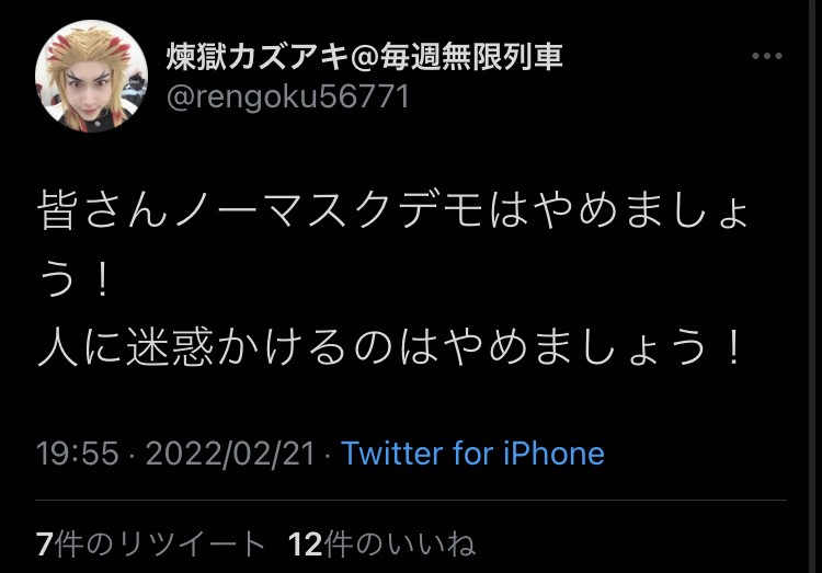 【悲報】煉獄さん、マスクとワクチン推進派の鬼になってしまう