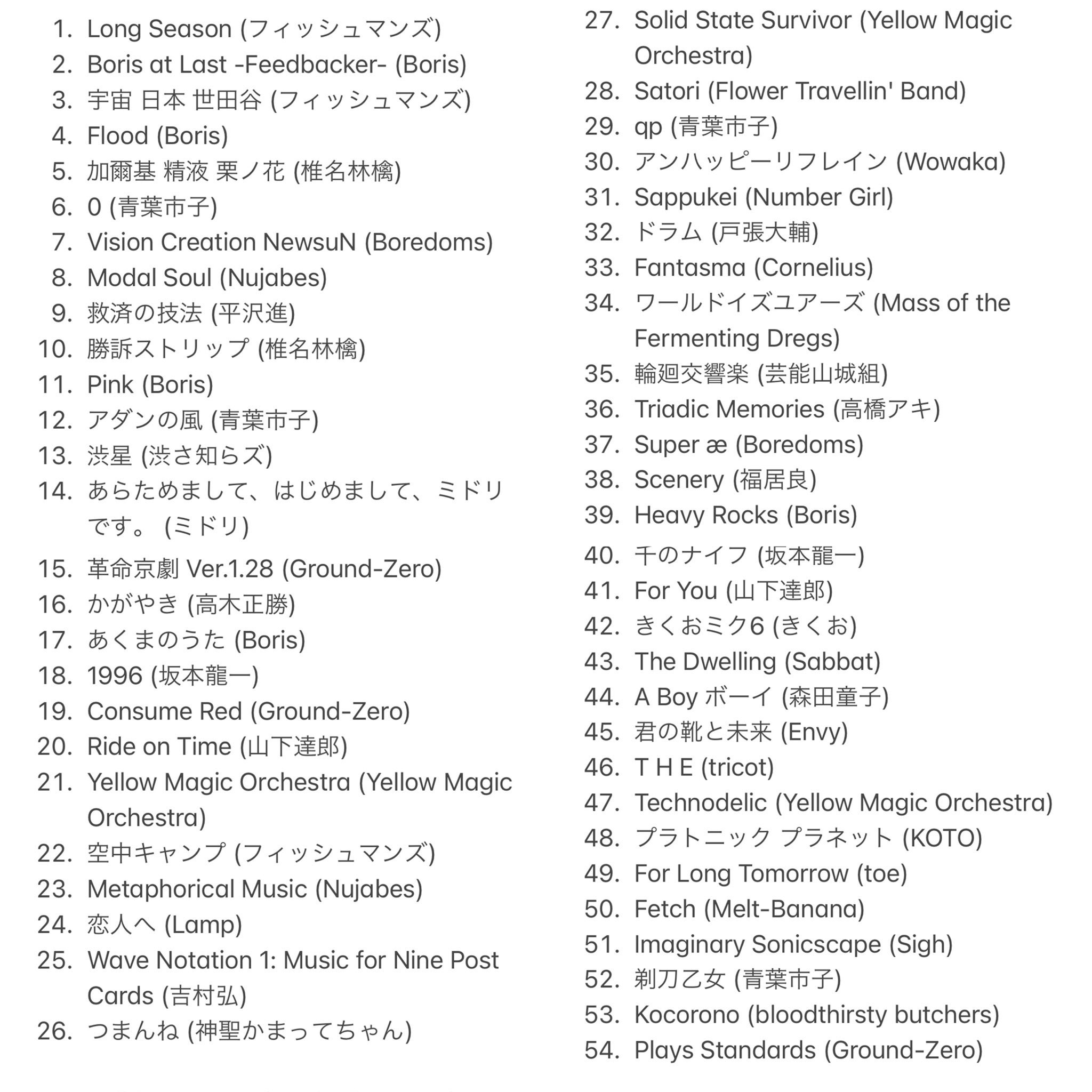 アメリカ最大手の音楽コミュニティ「Rate Your Music(RTM)」で、得点上位100位の日本のアルバムをピックアップ
