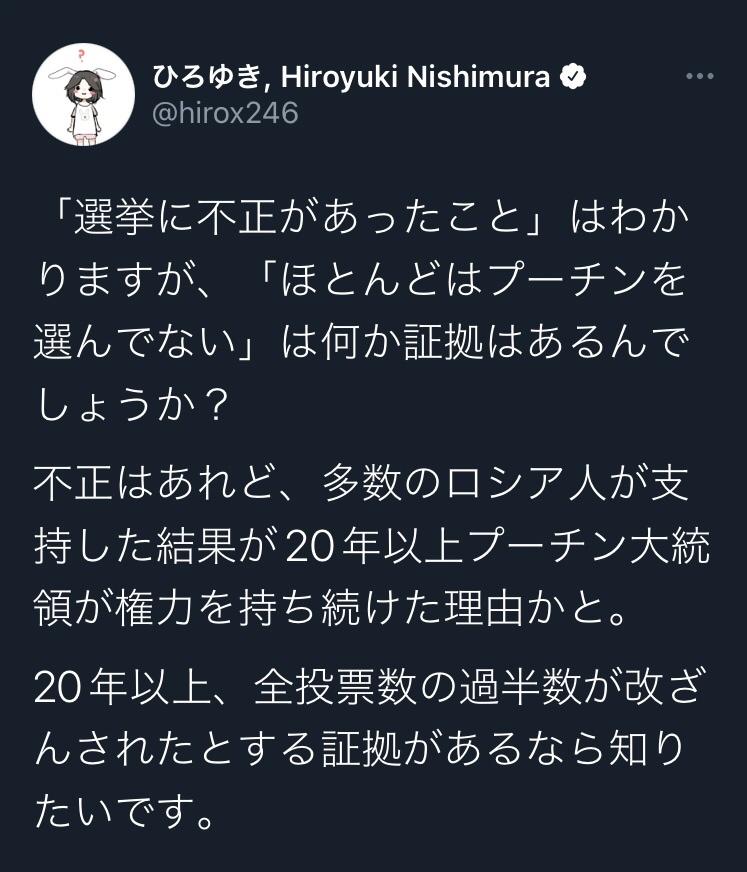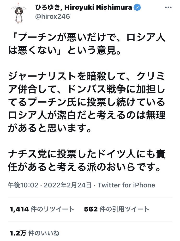 まあそもそもロシアに住んでもいない、データすらないひろゆきが