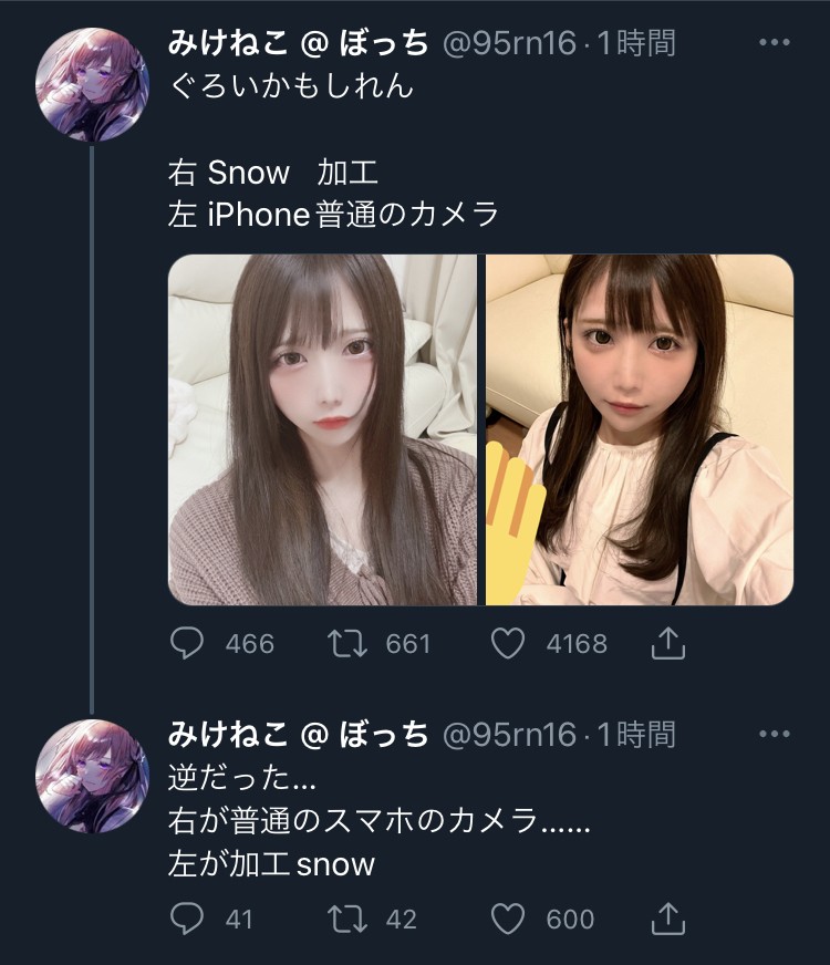 スマホ自撮りの時点である程度修正されてるようなもんだから