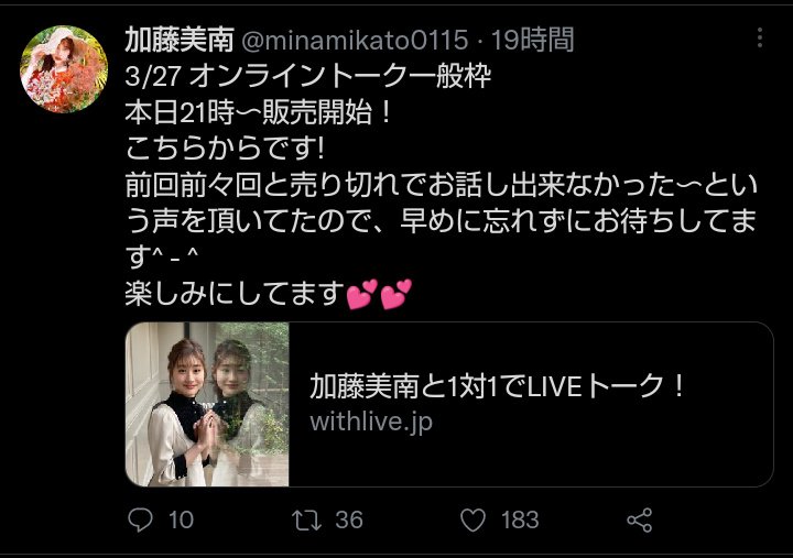 加藤美南と1対1でLIVEトーク!
