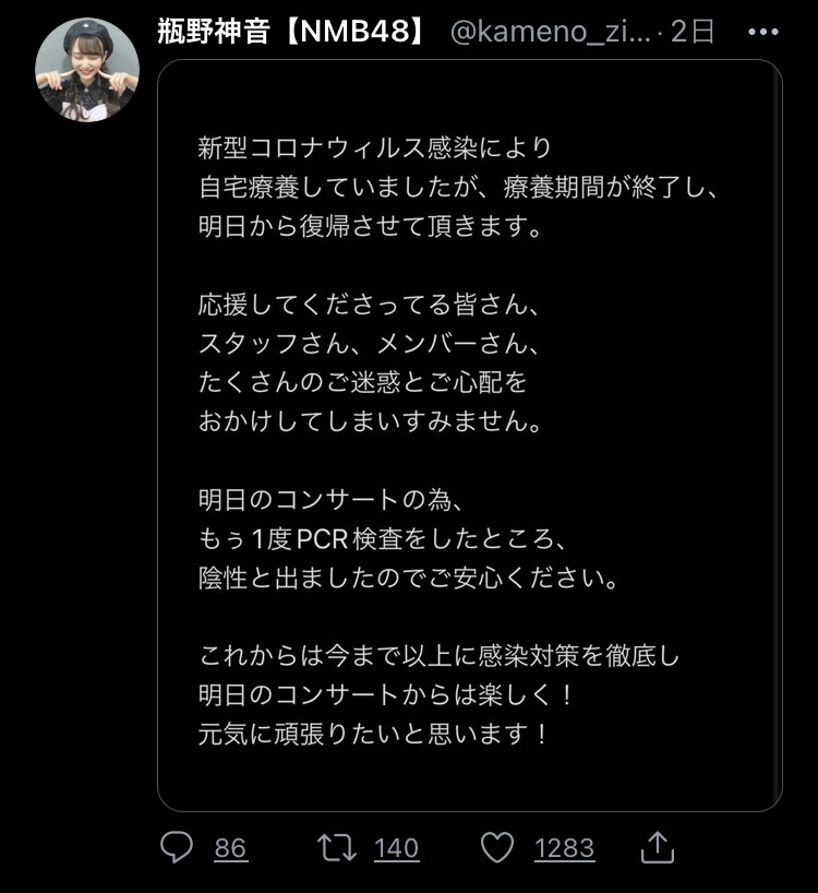 【悲報】NMB48さん、国のルールを無視した独自ルールでコロナ陽性者を3日で復帰させていた →コンサートでクラスター発生