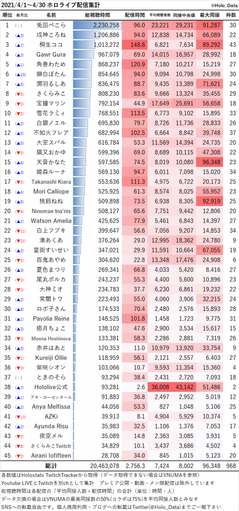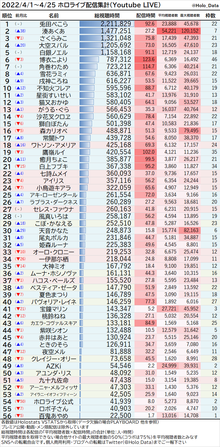 もうぺこらってあくあの最大同接の半分しか無いんやな