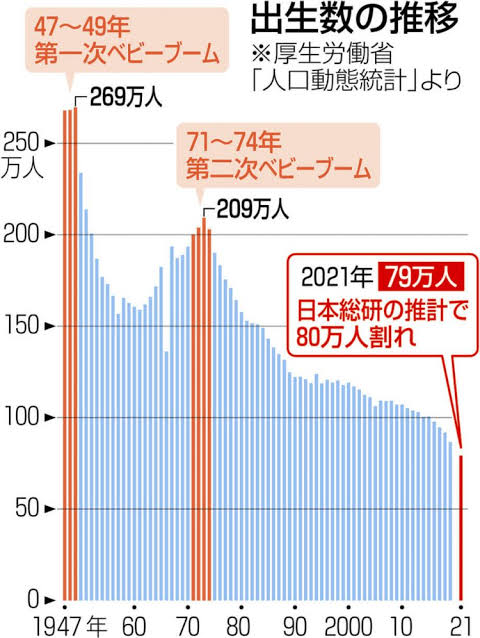 50年後には人口半減だっけ?まぁ今更頑張ってもどうにもならんのだから、あるがまま受け入れましょう(´・ω・`)