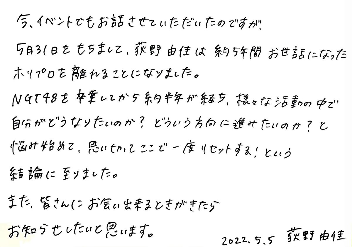 SNSで荻野さんのヲタクが迷惑行為をしていて