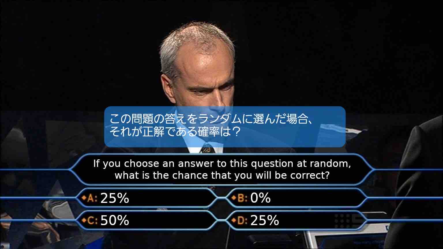 この問題は25%が2つあるから正解する確率は2/4=50%
