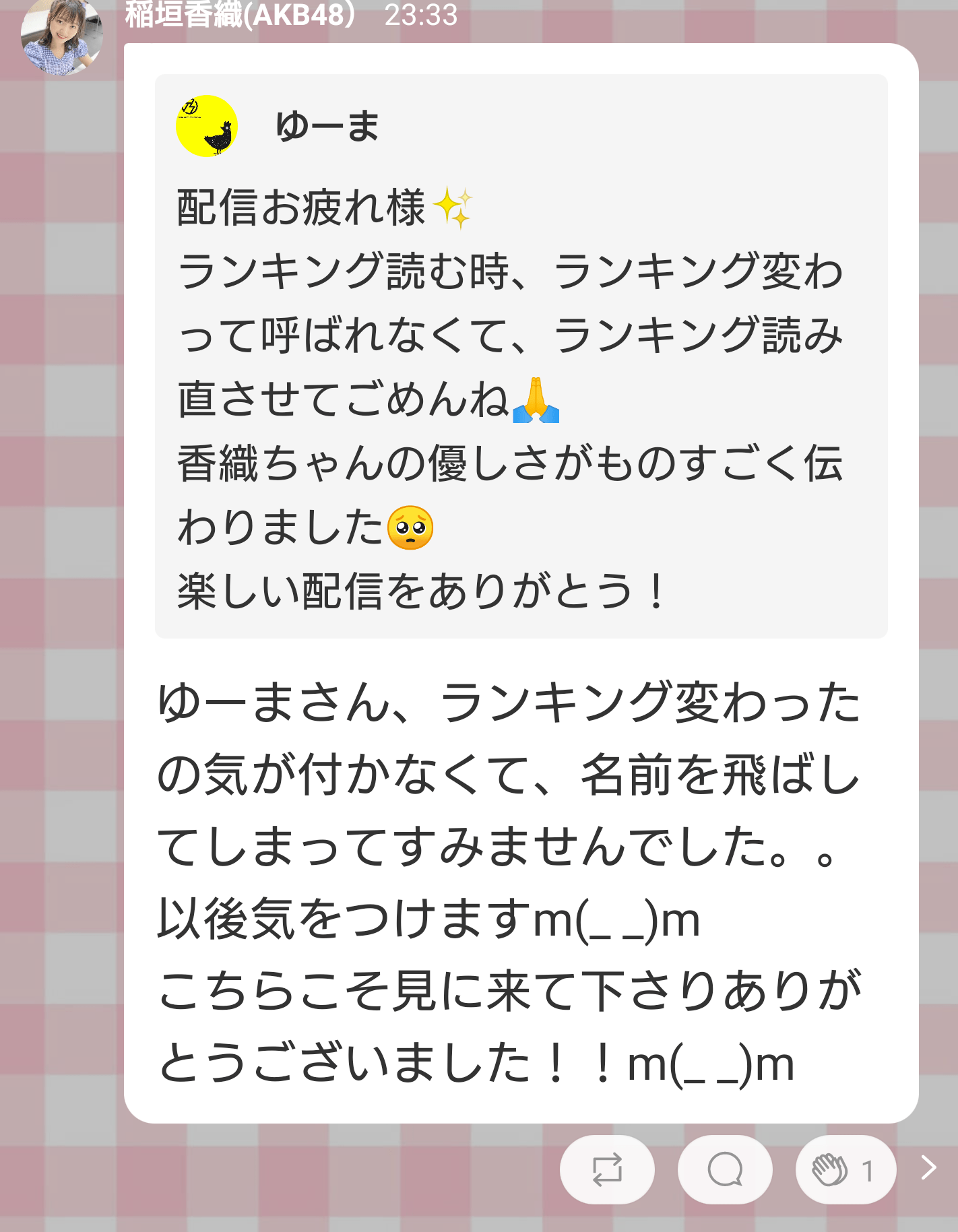 かおりちゃんのSHOWROOMってコメントを全て返さないといけないルールでもあるの?