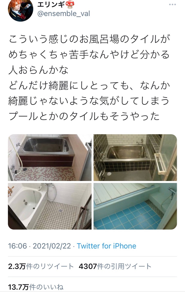 【画像】Twitter民「こういうお風呂場のタイル嫌いなの自分だけ?」←共感のいいね10万超!WWWWWWWWWWWWWWW | ヤバイ!ニュース(・∀・)