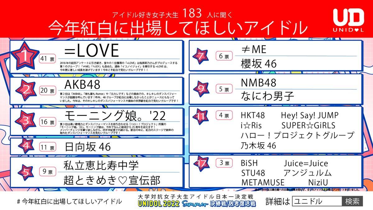 NHKホールでの開催を記念して、全国のアイドル好き女子大生にアンケート??
