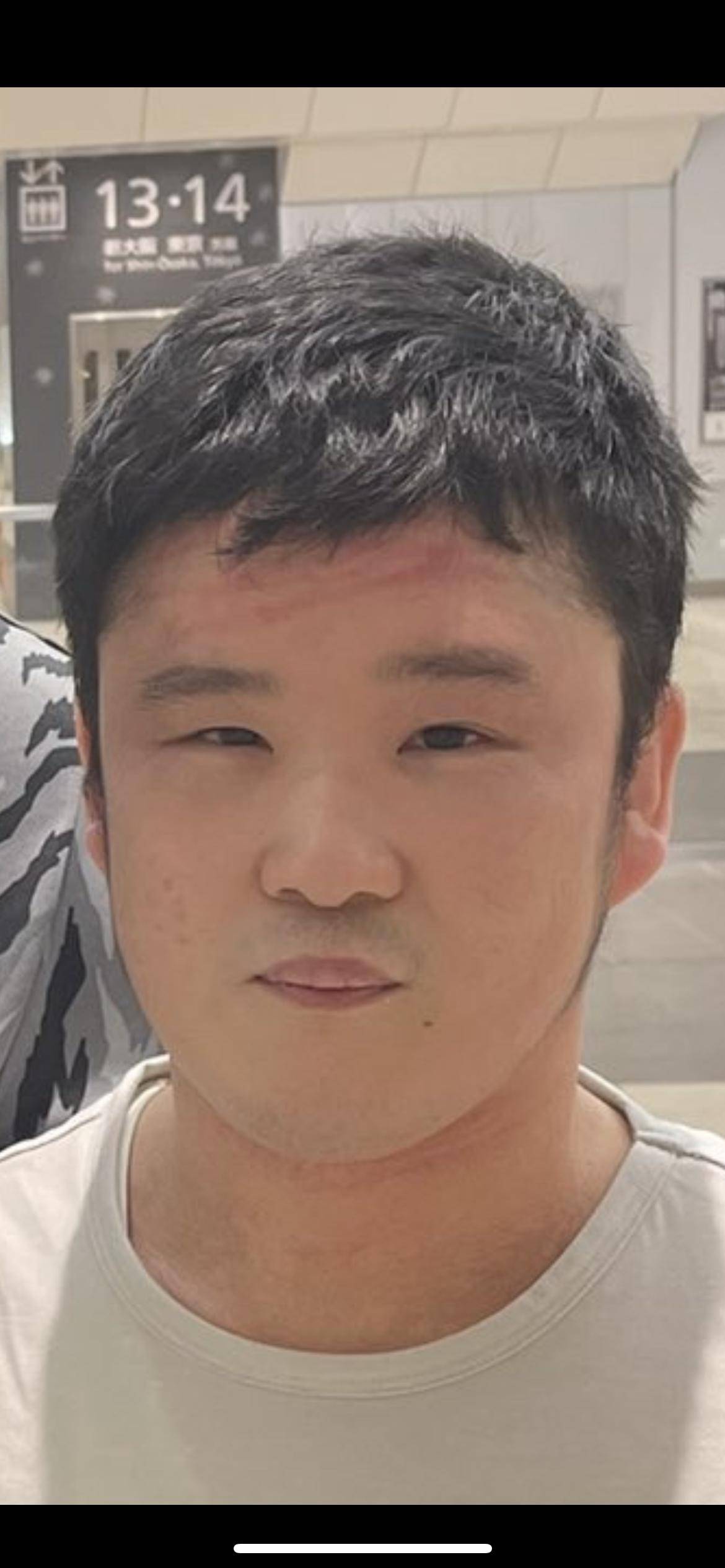 おでこにアトピーかゆかゆかきかきの痕があるやん