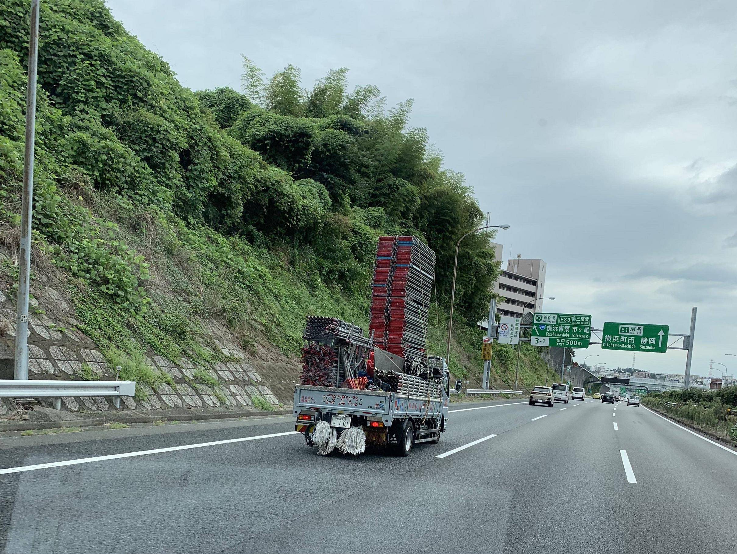 【画像】横浜に向かう業務トラックさん、とんでもない積み方をしてしまうwwwwwwwww