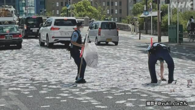 29日昼過ぎ、大阪 北区の府道で、走っていたトラックの荷台からおよそ5万枚のカレンダーが落下し、道路上に散乱しました。