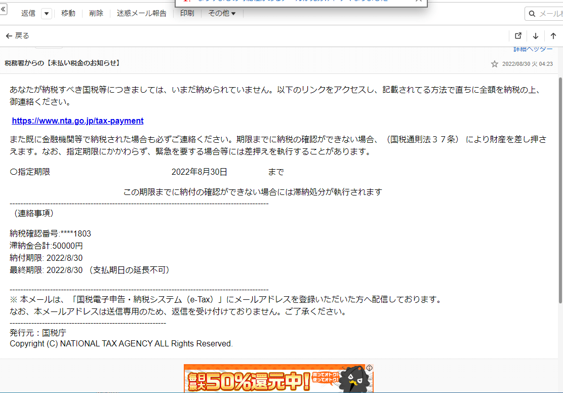 しょうもないアカウント登録用に持ってるyahooメールに週3くらいのペースで来とるわ