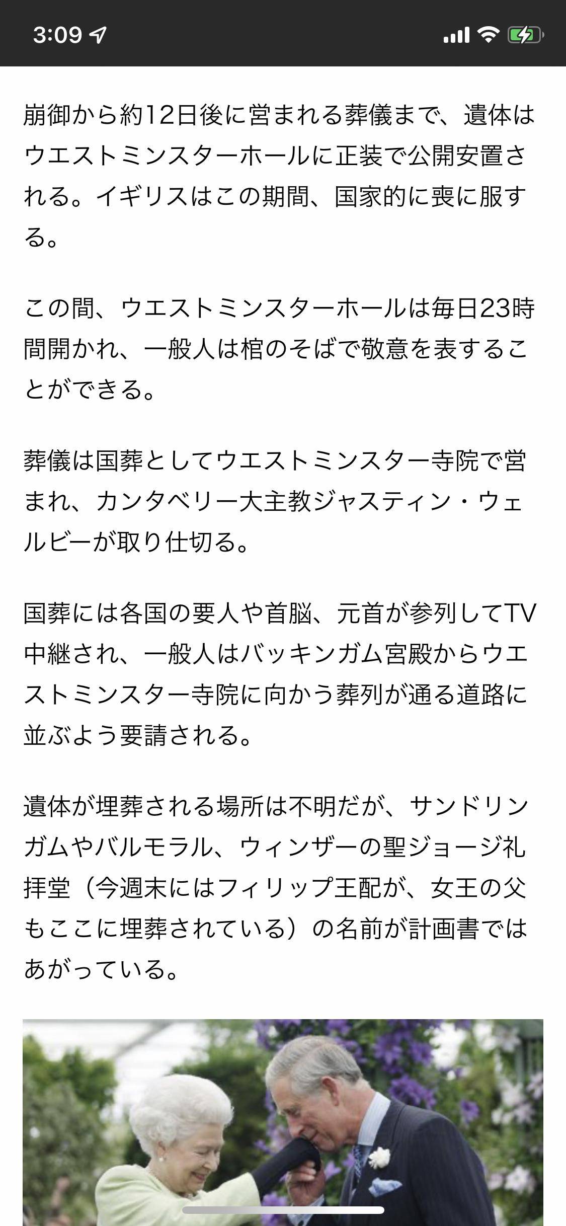 エリザベス二世の国葬は死去の十日後らしいから18日やん
