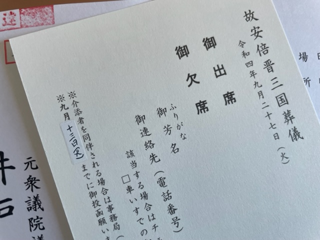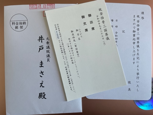 土曜の朝、速達が届き、なにかと思えば国葬儀の案内。