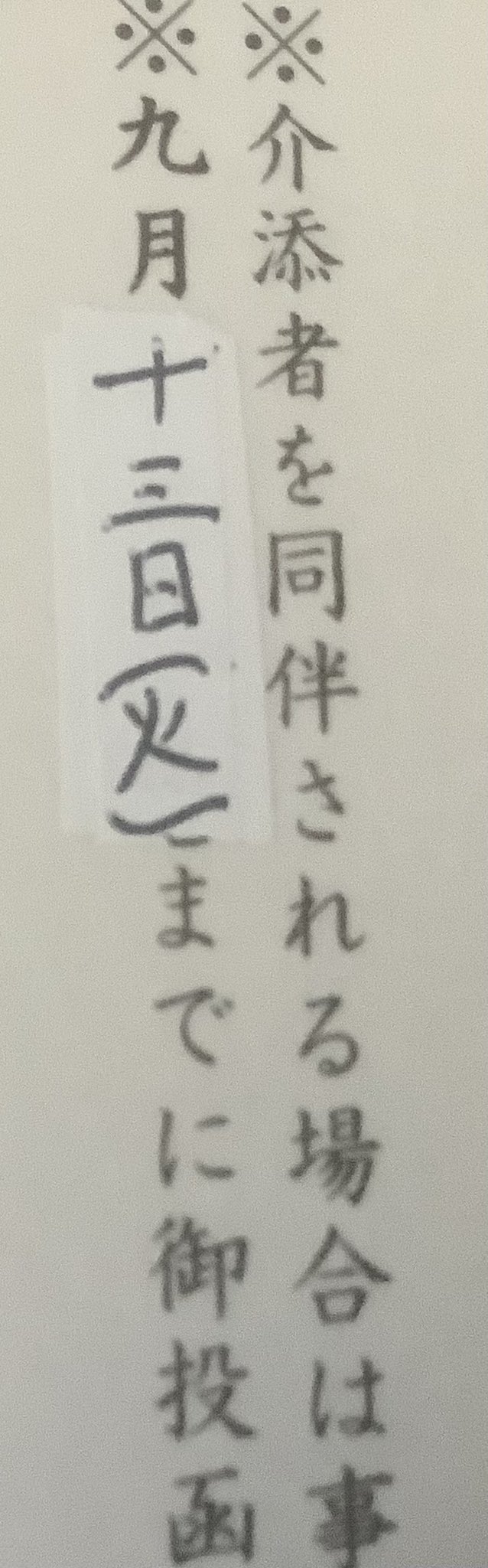 ▼ホントだ。僕にきた案内状も手書きで締め切りの日付けが書かれています。出席者が予想より少ないのでしょうか。 twitter.com/idomasae/statu…