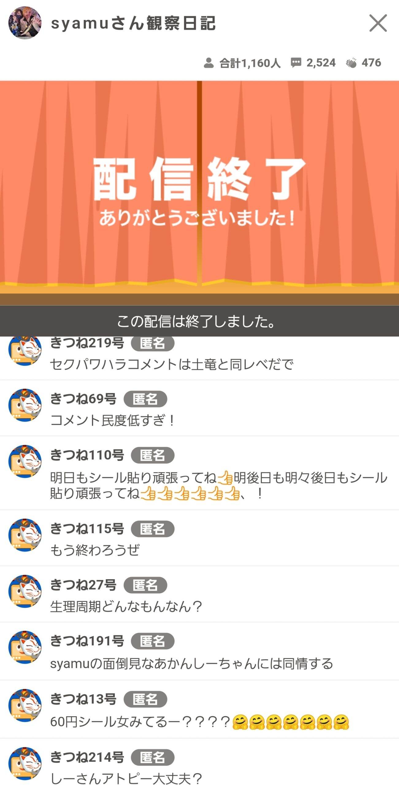 愚痴配信で散々syamuを悪く言ってたのが返ってきたんやな