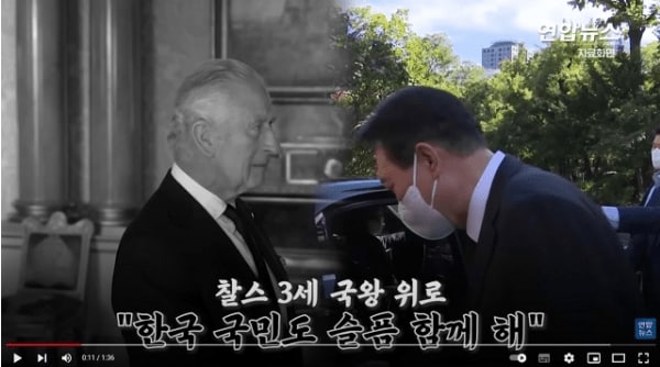 二つ目は、チャールズ3世と尹大統領が対面で会話しているかのように作った映像だ。