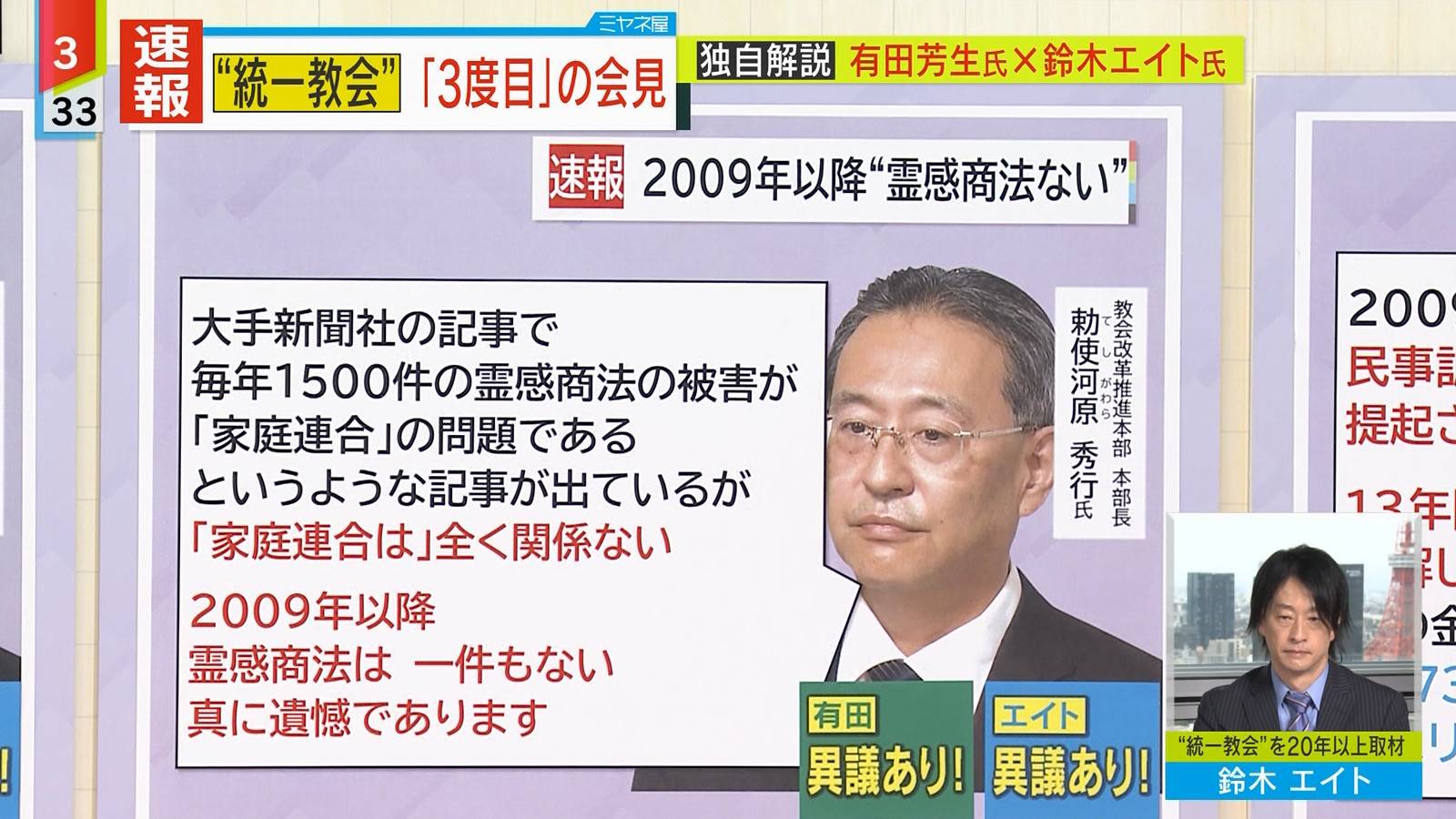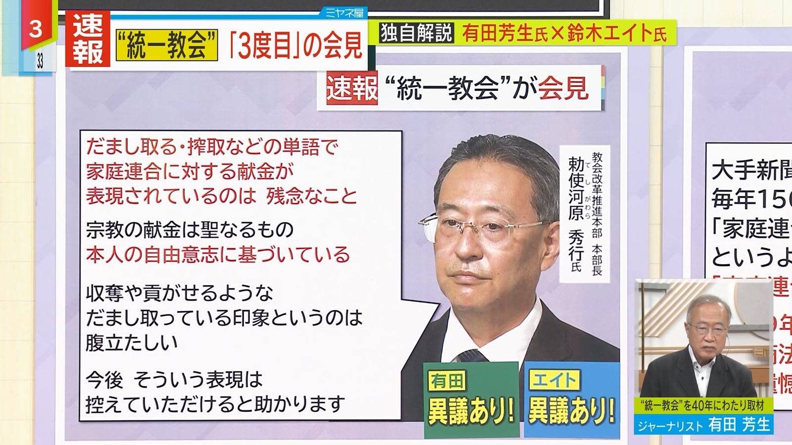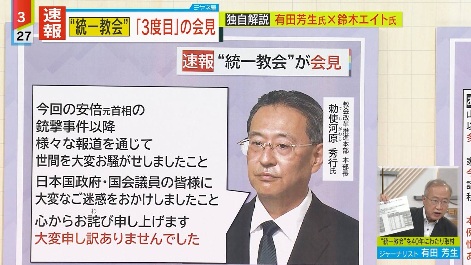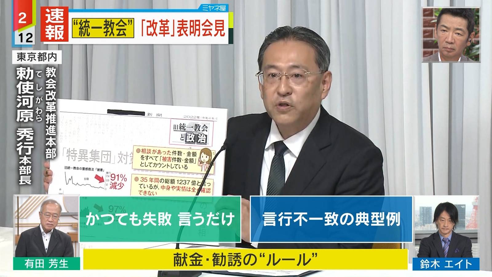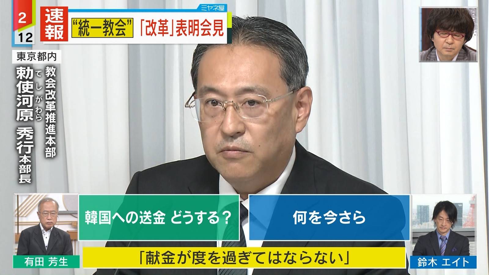 「献金過度だった」認める 容疑者家族巡り旧統,一教会が会見