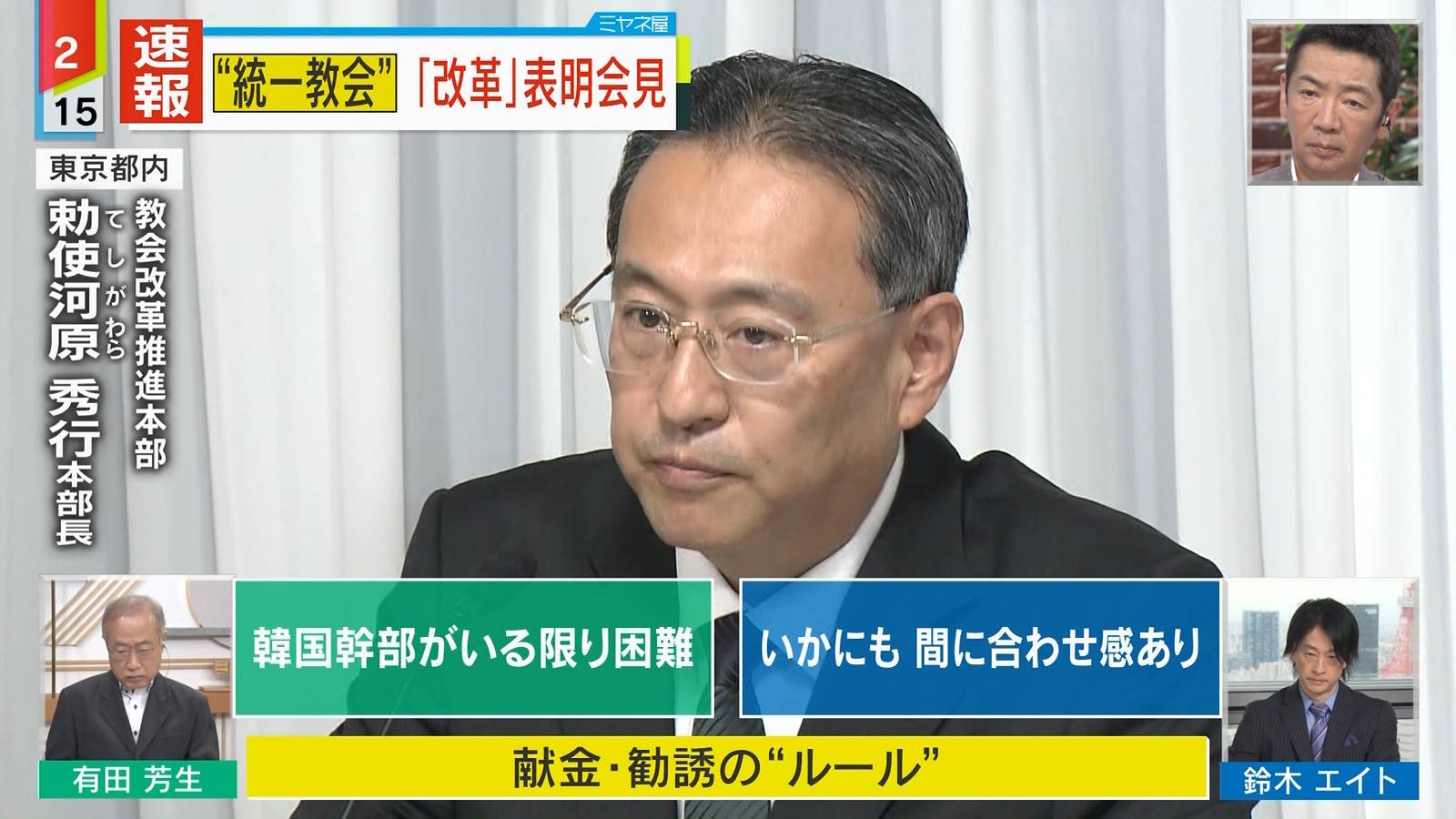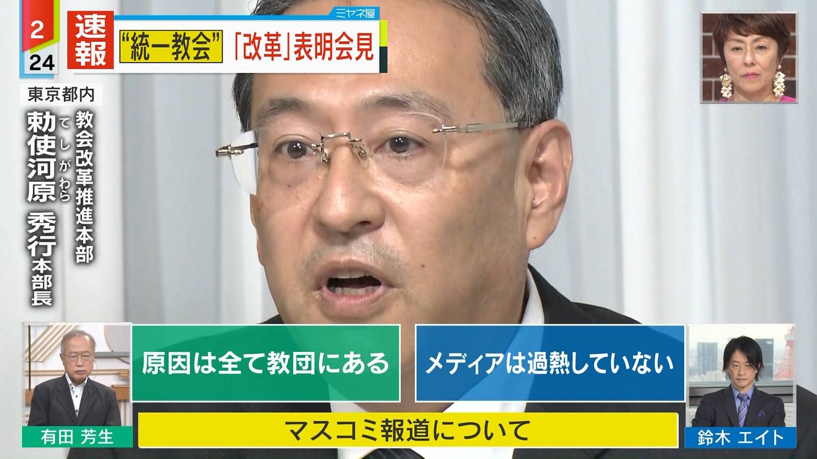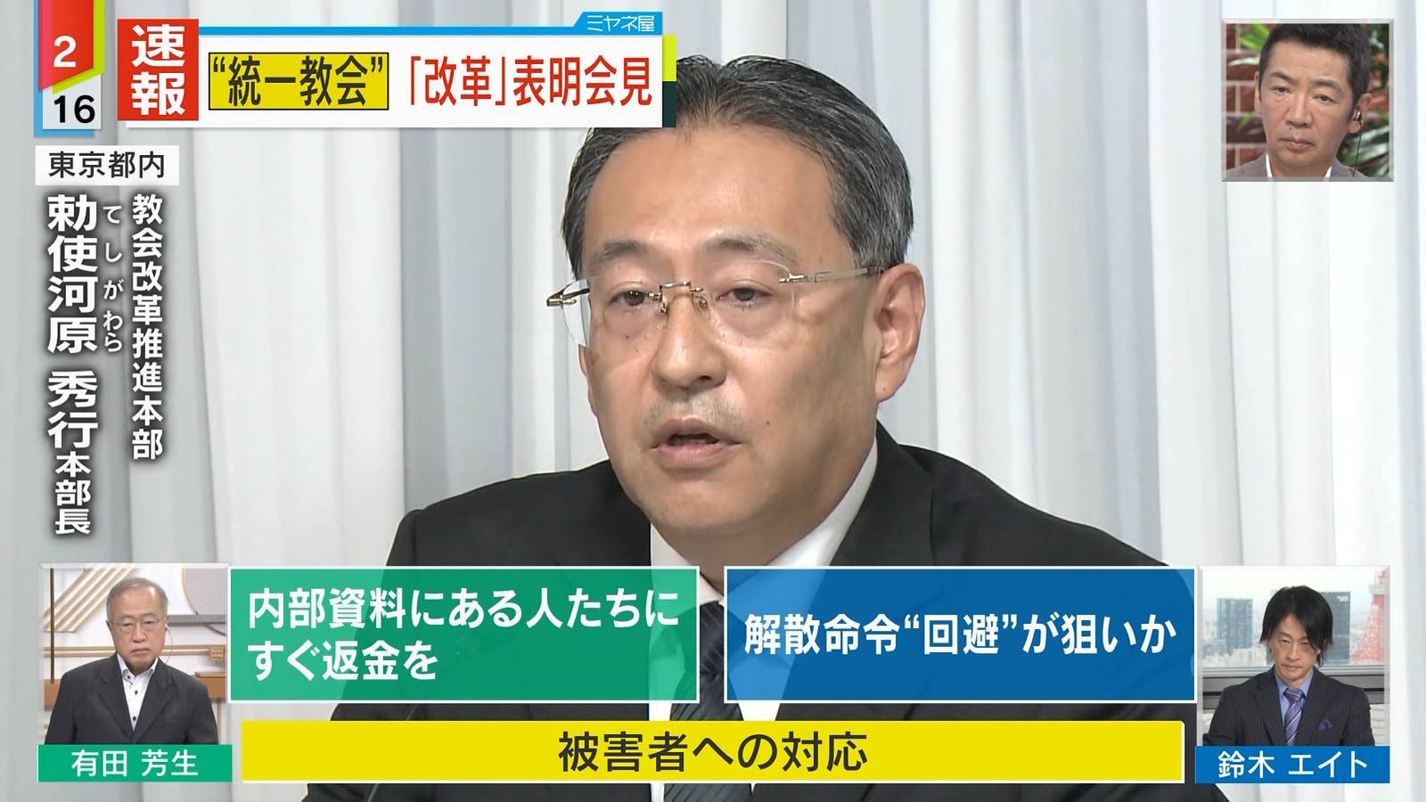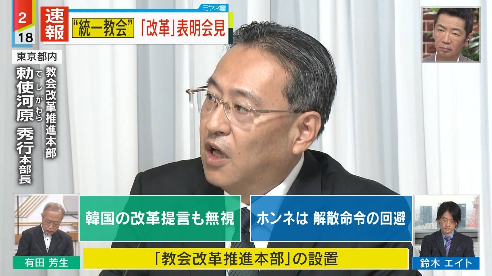 教団の改革推進本部長に就任した勅使河原秀行氏は個人的な見解として、