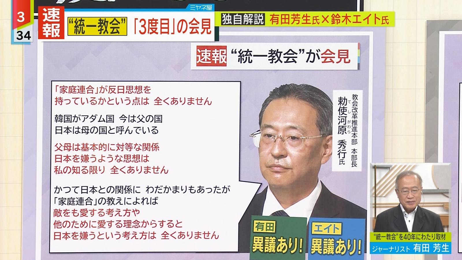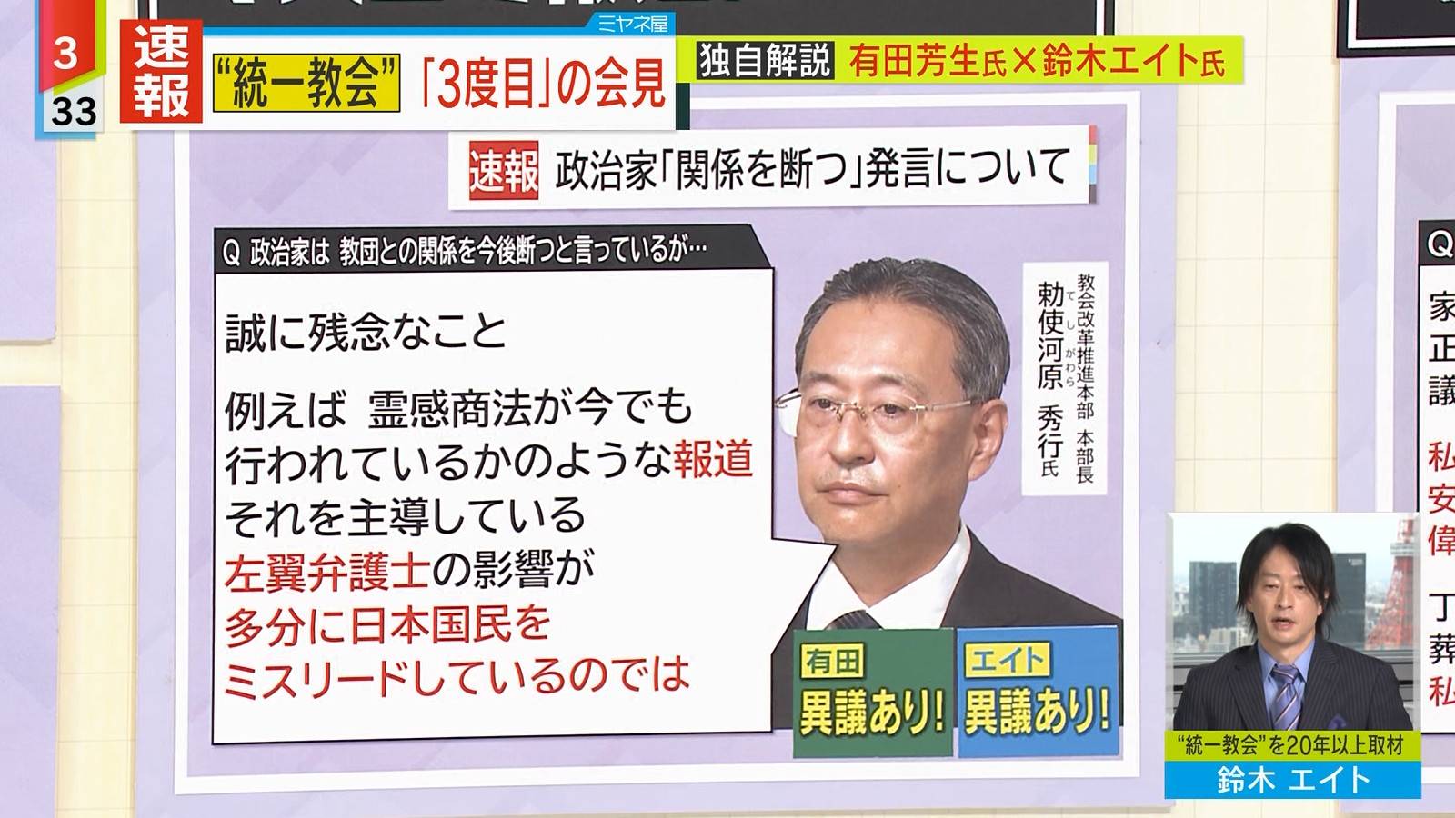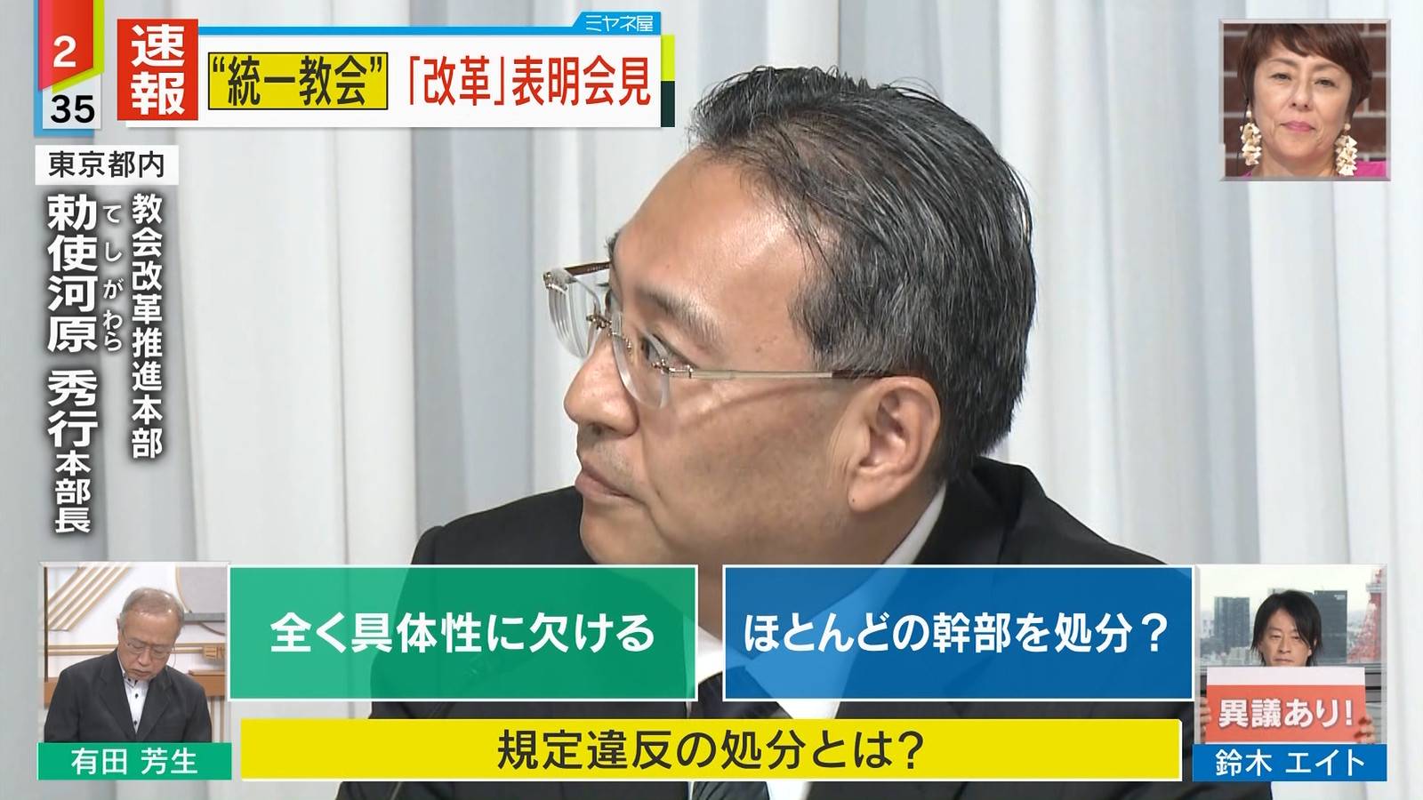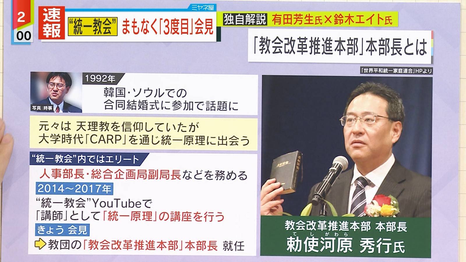教団の改革推進本部長に就任した勅使河原秀行氏は個人的な見解として、