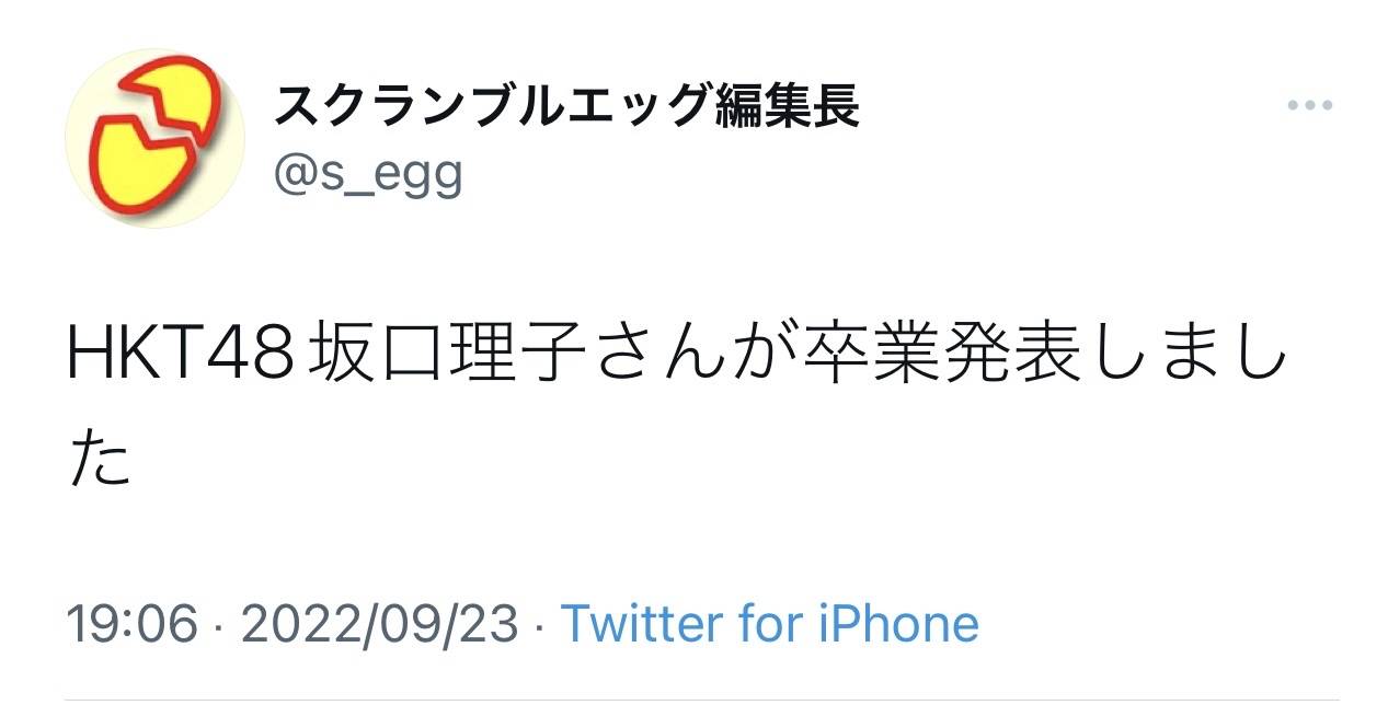 坂口理子とは卒業に関して、話し合いを重ねてまいりましたが、本人の意向を尊重した結果、大変残念ではございますが、2022年12月5日(月)の卒業公演をもって、活動を終了させていただきます。