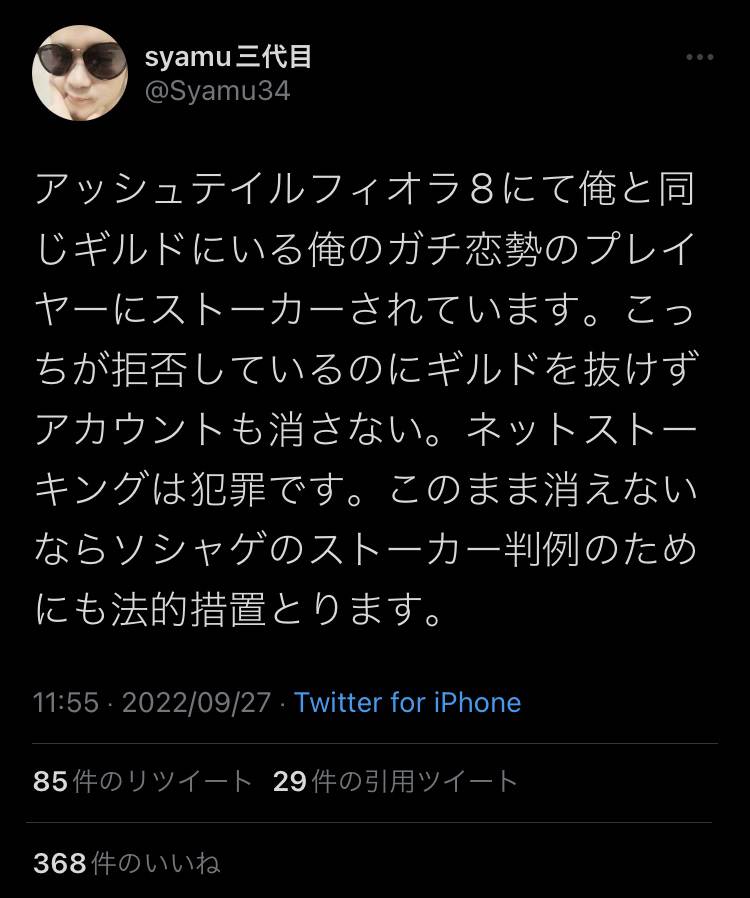 【悲報】syamuさん、ストーカーに脅迫をはじめる