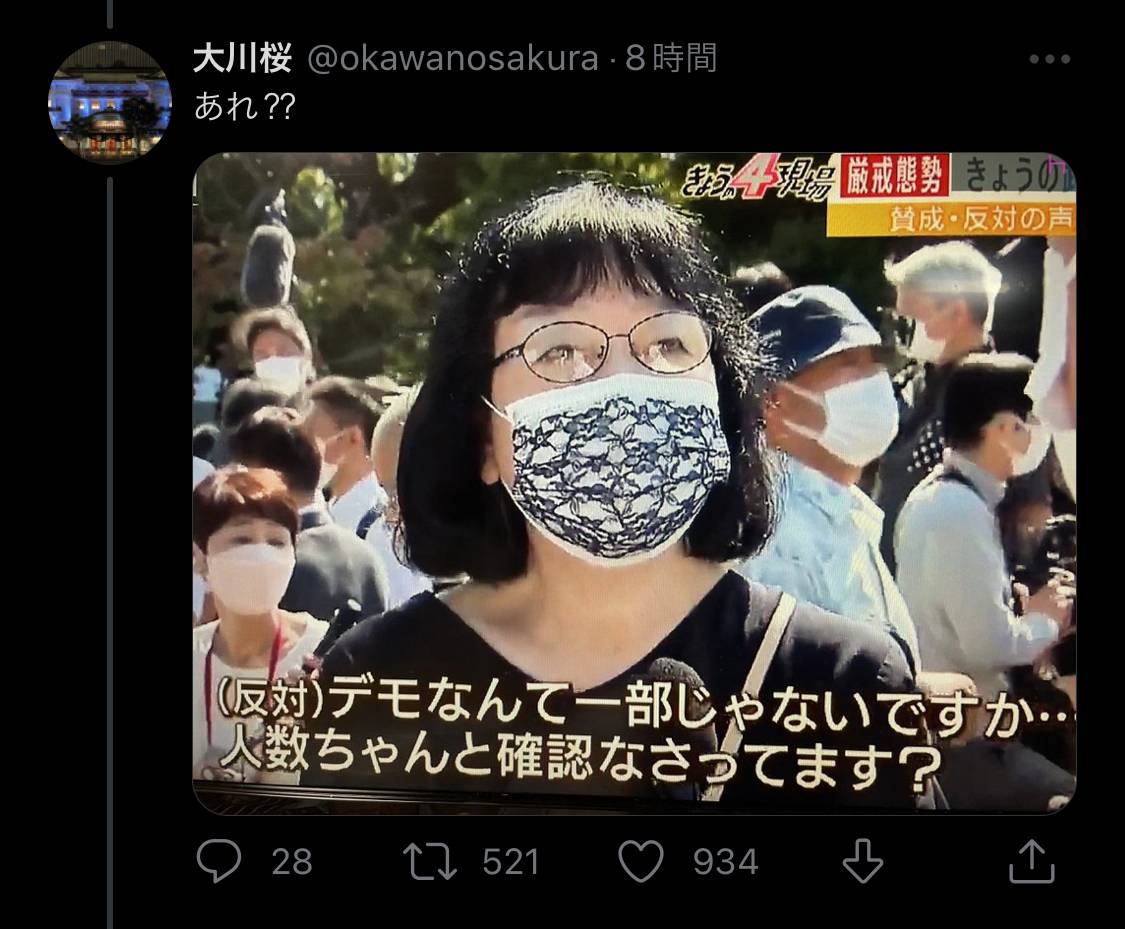 【朗報】各テレビ局さん、安倍国葬で偶然同じ人に偶然インタビューしてしまう🥵偶然だよ