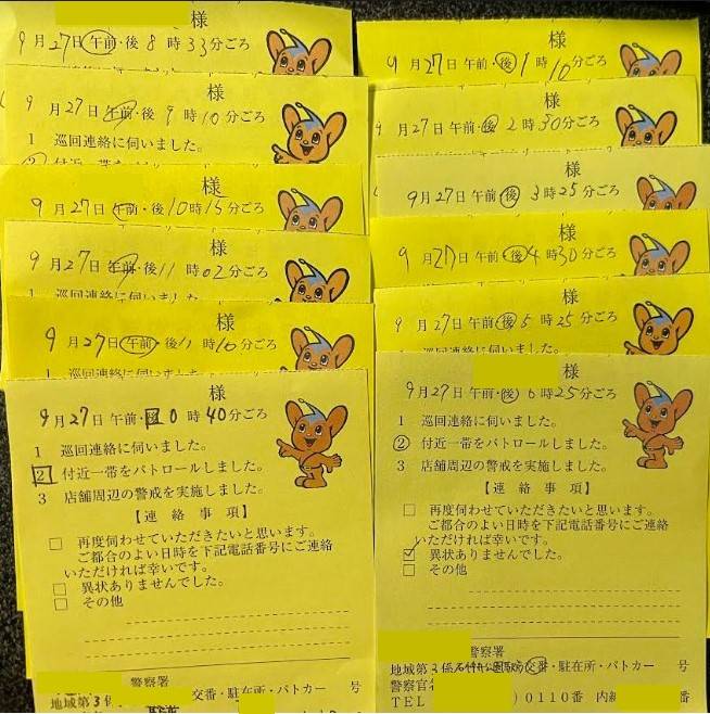 地元の警察署の警察官の方々が毎日自宅付近一帯をパトロールしてくれています。
