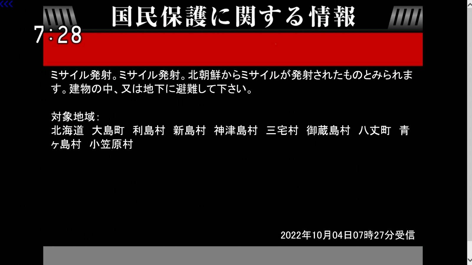 青森真っ赤だったけど、落ちたらどうしようもないんよな。地下に避難して下さいとかニュースでも言ってるけど、青森地下鉄ないからね?防空壕でもあると思ってる?地下シェルターでも税金で作って欲しいもんだわ。