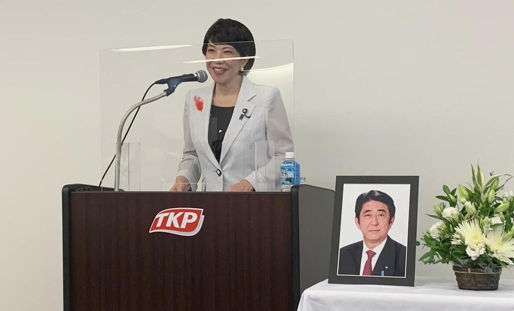 安倍元首相の写真も演台の横に置かれており、思うところがあったのだと思います。