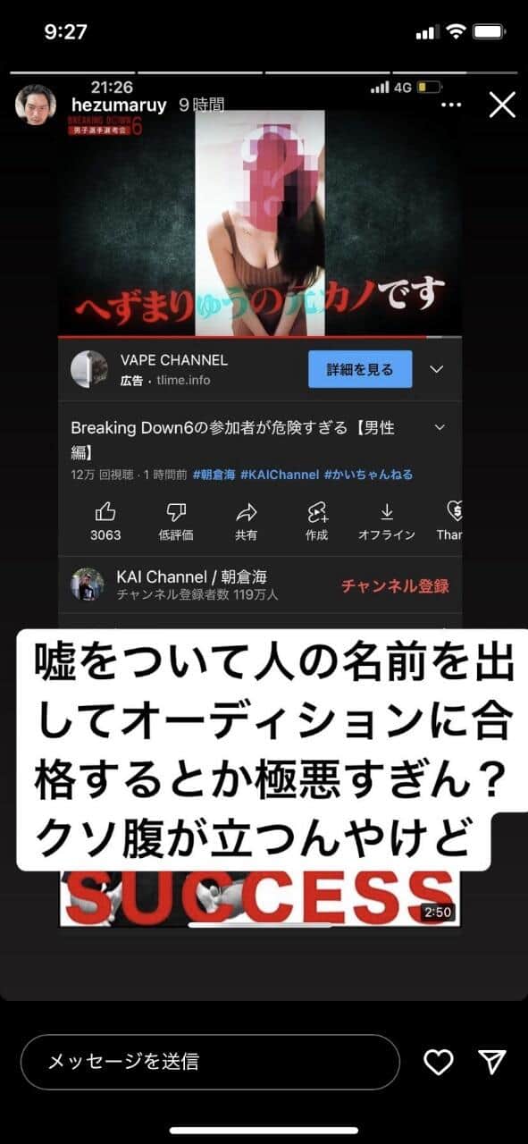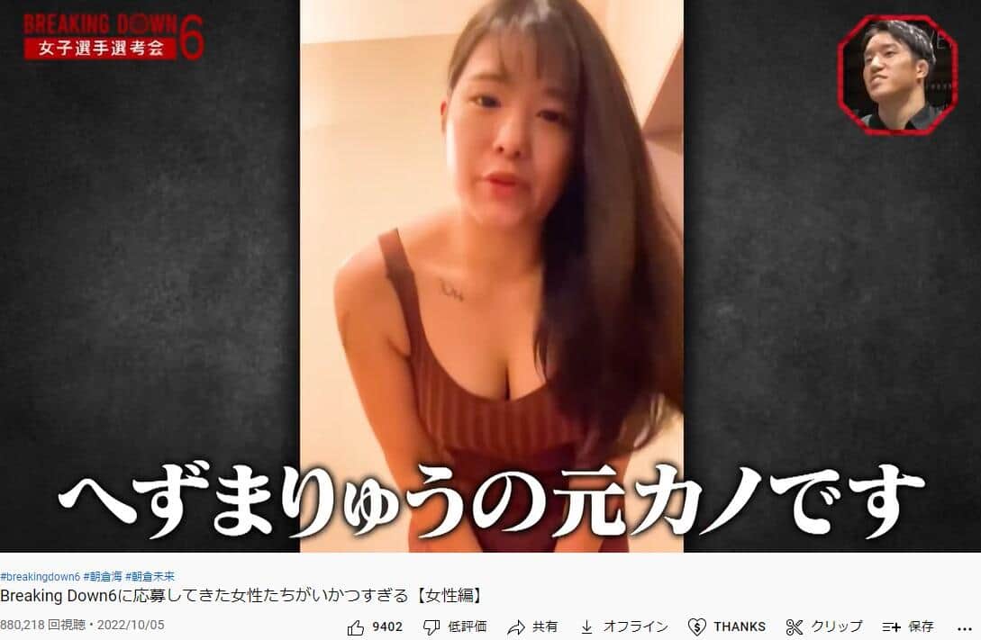さらには「基本的に(「Breaking Down6」本戦には)美男美女が選ばれてましたね。キャラの濃い。へずまの嫁除いて」と口撃した。