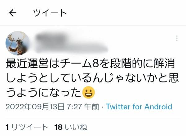 それが終了したとともにチーム8の解体作業に着手し始めたんだろう