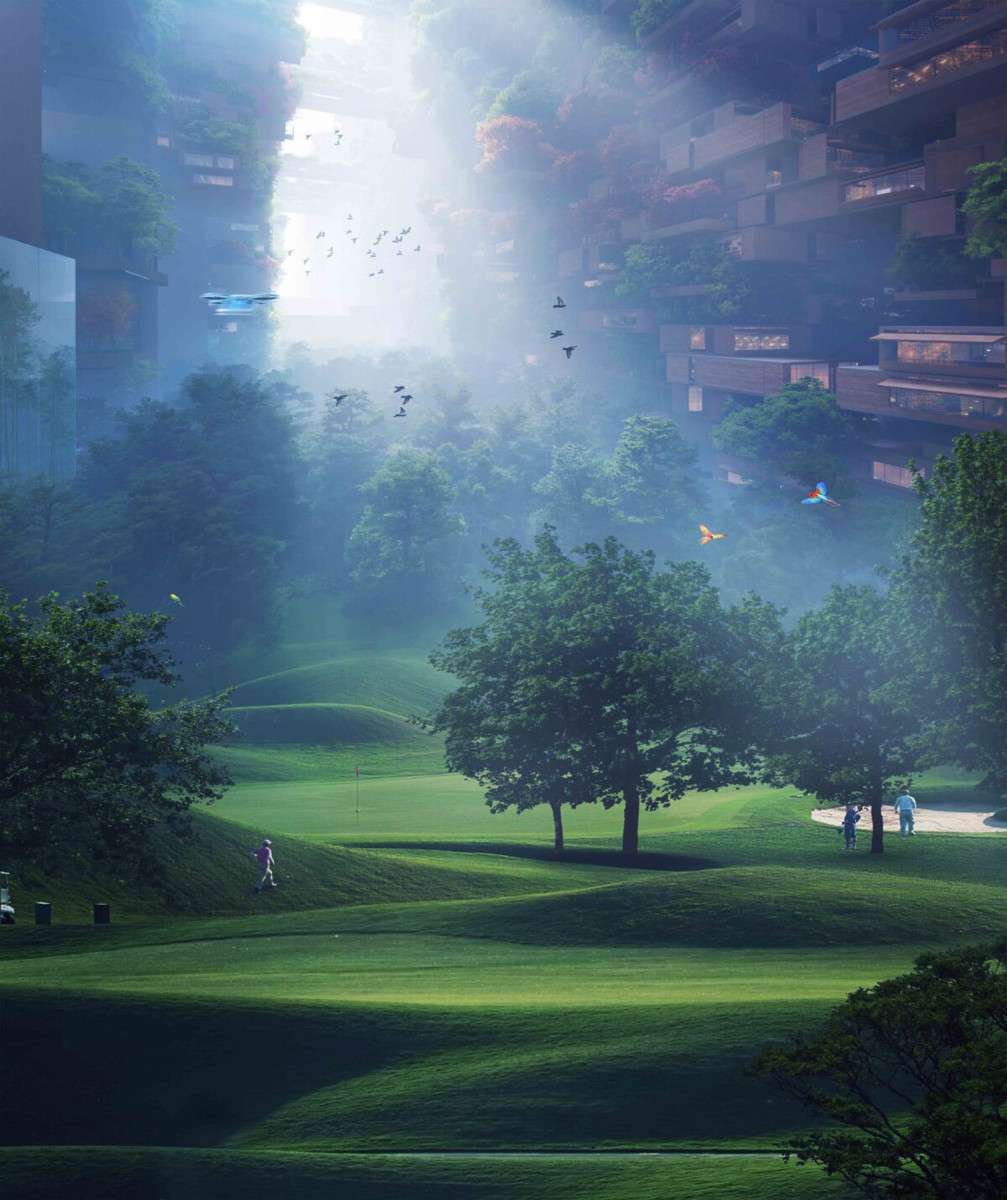 住民は垂直農法で食料を調達し、定額を支払うことで1日3食が支給される予定。都市の地下には高速鉄道が走り、どこへ行くにも20分以内で到達できるという。