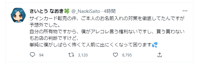 これ売ったやつのせいでもうサインカードは出回らんくなるんやな