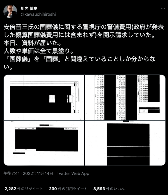 【画像】安倍国葬の警備費用、ついに開示される | ヤバイ!ニュース(・∀・)