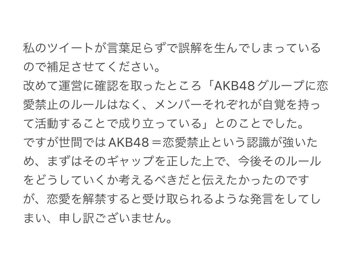 向井地「AKBは既に恋愛解禁しており今後どうしていくか考えるべきだと伝えたかった」